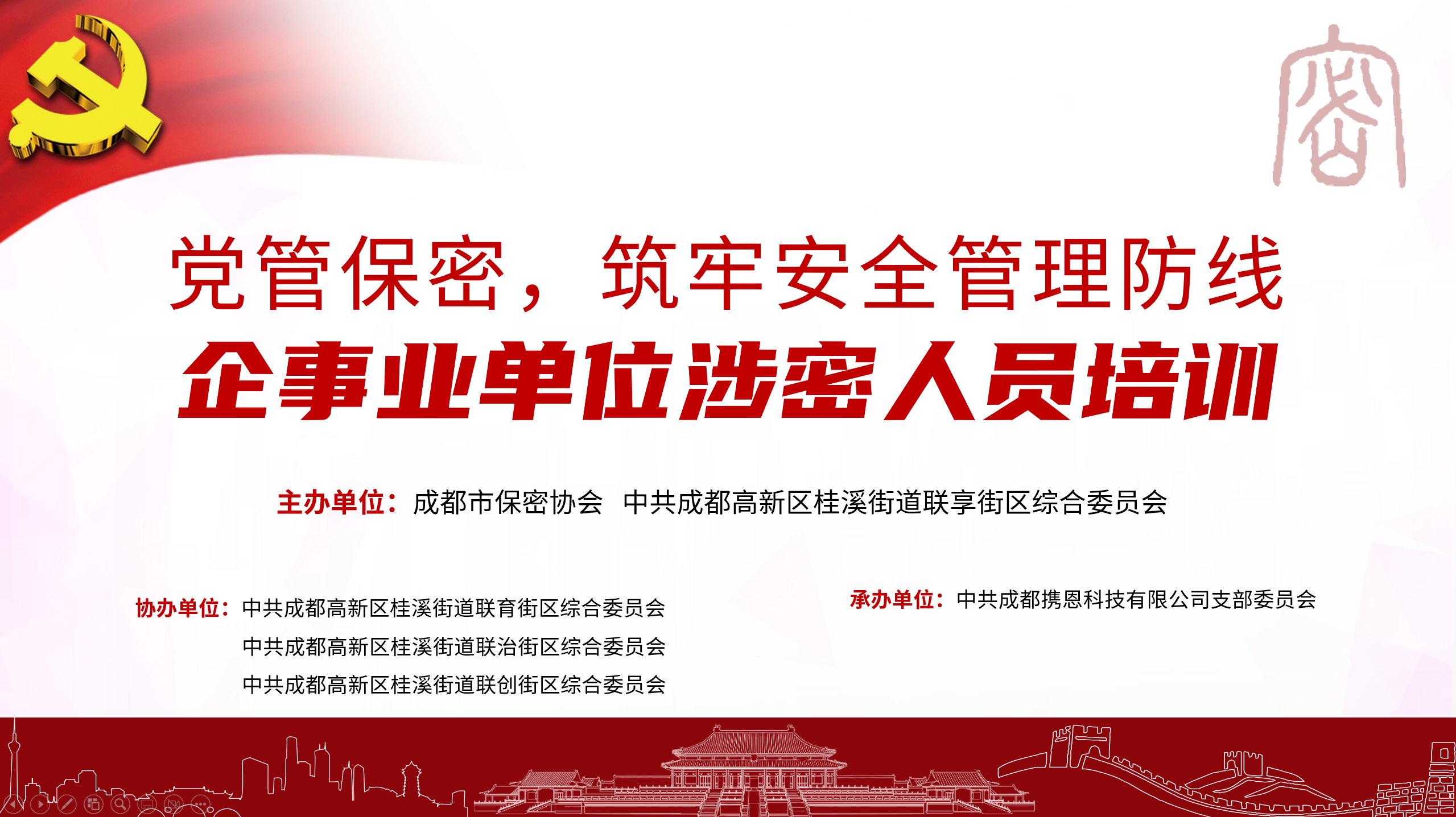 本次培訓(xùn)由成都市保密協(xié)會、中共成都高新區(qū)聯(lián)享街區(qū)綜合委員會主辦;中共成都高新區(qū)聯(lián)育街區(qū)綜合黨委、聯(lián)治街區(qū)綜合黨委、聯(lián)創(chuàng)街區(qū)綜合黨委協(xié)辦;中共成都攜恩科技有限公司支部委員會承辦。